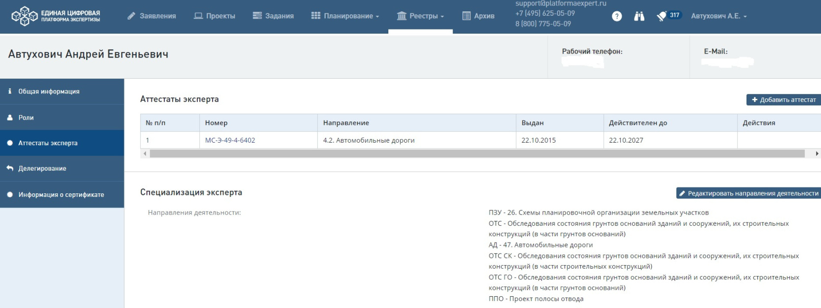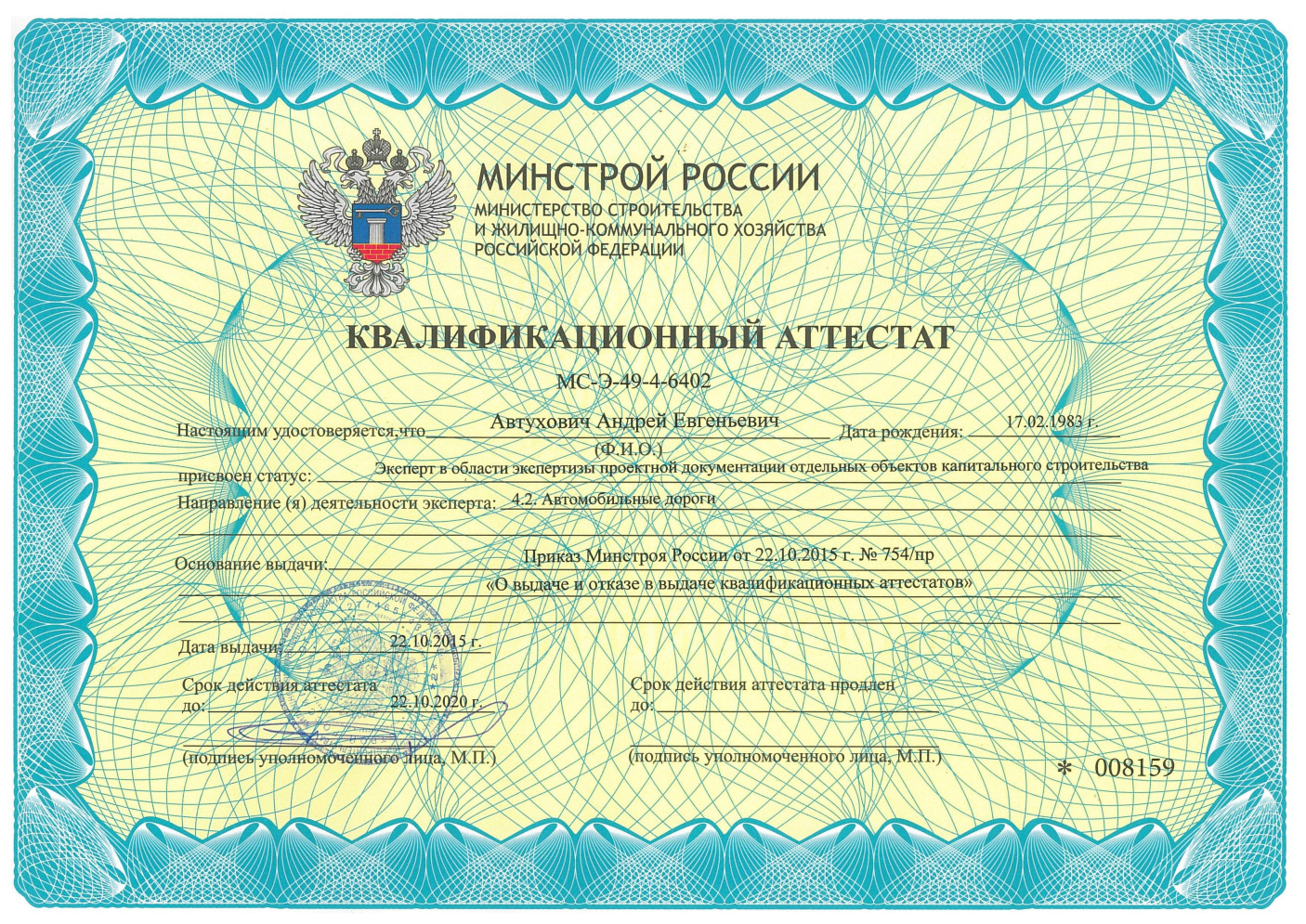 Включен в Реестр Минстроя России в качестве аттестованного эксперта по направлению "Автомобильные дороги" за номером 8577 (http://www.minstroyrf.ru/trades/gosuslugi/1/).